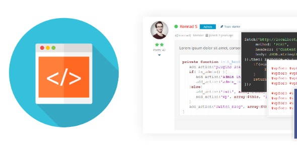 wpForo Syntax Highlighter addon displays formatted source code using the highlight.js JavaScript library in content of forum posts. This addon supports almost all programming languages including Apache, C#, C++, CSS, HTML, XML, JSON, Java, JavaScript, Objective-C, PHP, Perl, Python, Ruby, SQL, Basic, TypeScript, VB.NET with dozens of different syntax highlighting styles. With this addons your forum users can insert different scripts and codes using the [<>] code toolbar button in post editor. In the dashboard settings you can enable/disable certain programming languages and change the highlighting style.